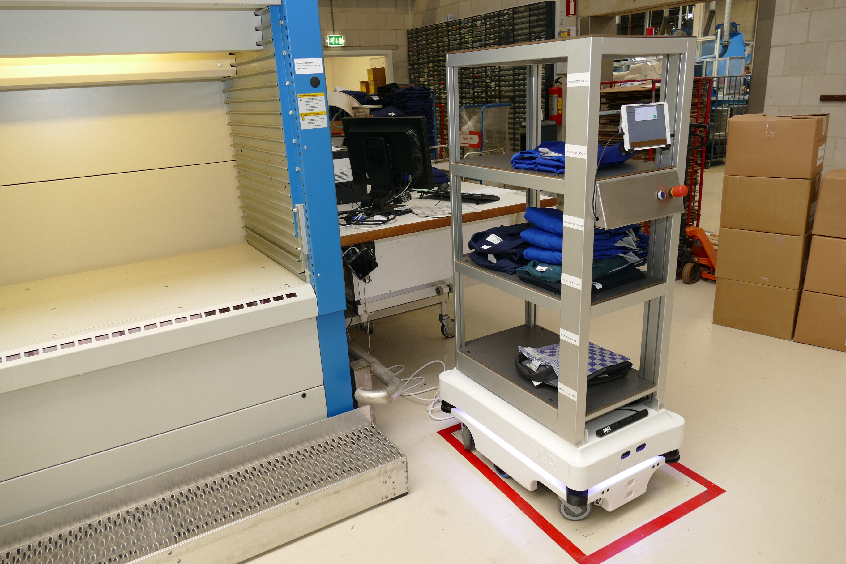 Nach den ersten Testfahrten des innerbetrieblichen Transportroboters im Oktober vergangenen Jahres hat der Roboter seit vergangener Woche definitiv einen neuen Heimathafen: die Wäscherei von Lavans!