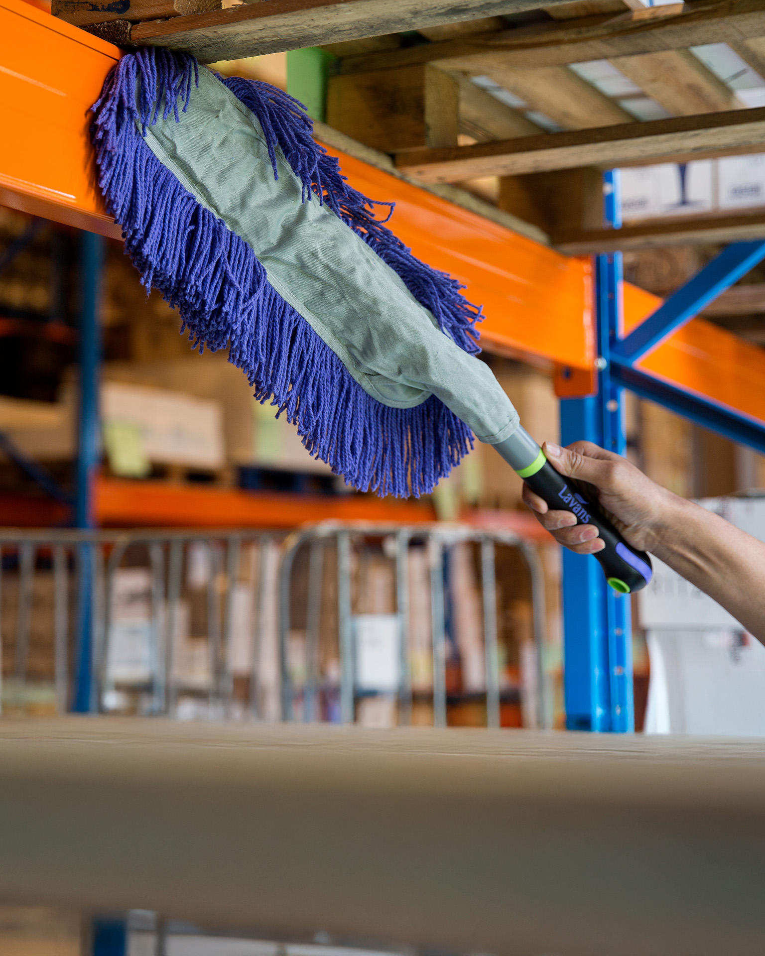 Klein, aber oho: Mit dem optionalen Teleskopgriff erreichen Sie bis zu sechs Meter Höhe. Stabil genug für gründliches Arbeiten, handlich genug für präzises Wischen. Ob Deckenrohre in der Produktion oder verstaubte Träger in der Lagerhalle – da kommen Sie ran.
