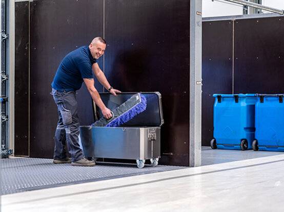 Wenn es um die fachgerechte Reinigung großer Flächen in Gewerbe, Industrie oder öffentlichen Einrichtungen geht, kommt es nicht nur auf hochwertige Wischer an, sondern auch auf eine angemessene Aufbewahrung derselben. Unpassend gelagert kann es hier schnell zu unnötigem Verschleiß oder einer reduzierten Reinigungsleistung kommen. Um dem vorzubeugen, lohnt es sich also, auch hier Wert auf Hygiene und Ordnung zu legen. Aus diesem Grund legen wir Ihnen unsere eigens dafür entwickelten Aluminiumkisten ans Herz. So sind Ihre Wischer auch dann, wenn sie gerade nicht in Benutzung sind, stets sicher verstaut.